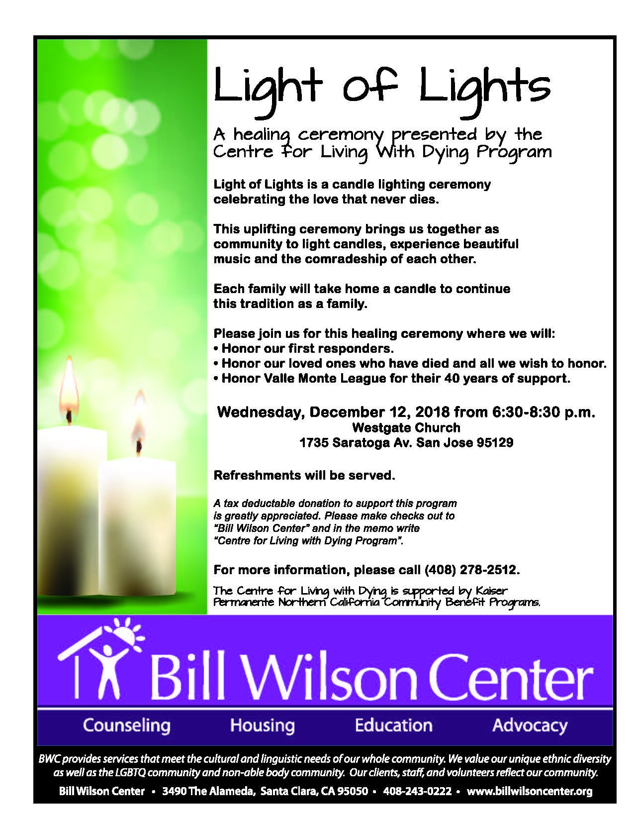 For more information, please call (408) 278-2512.